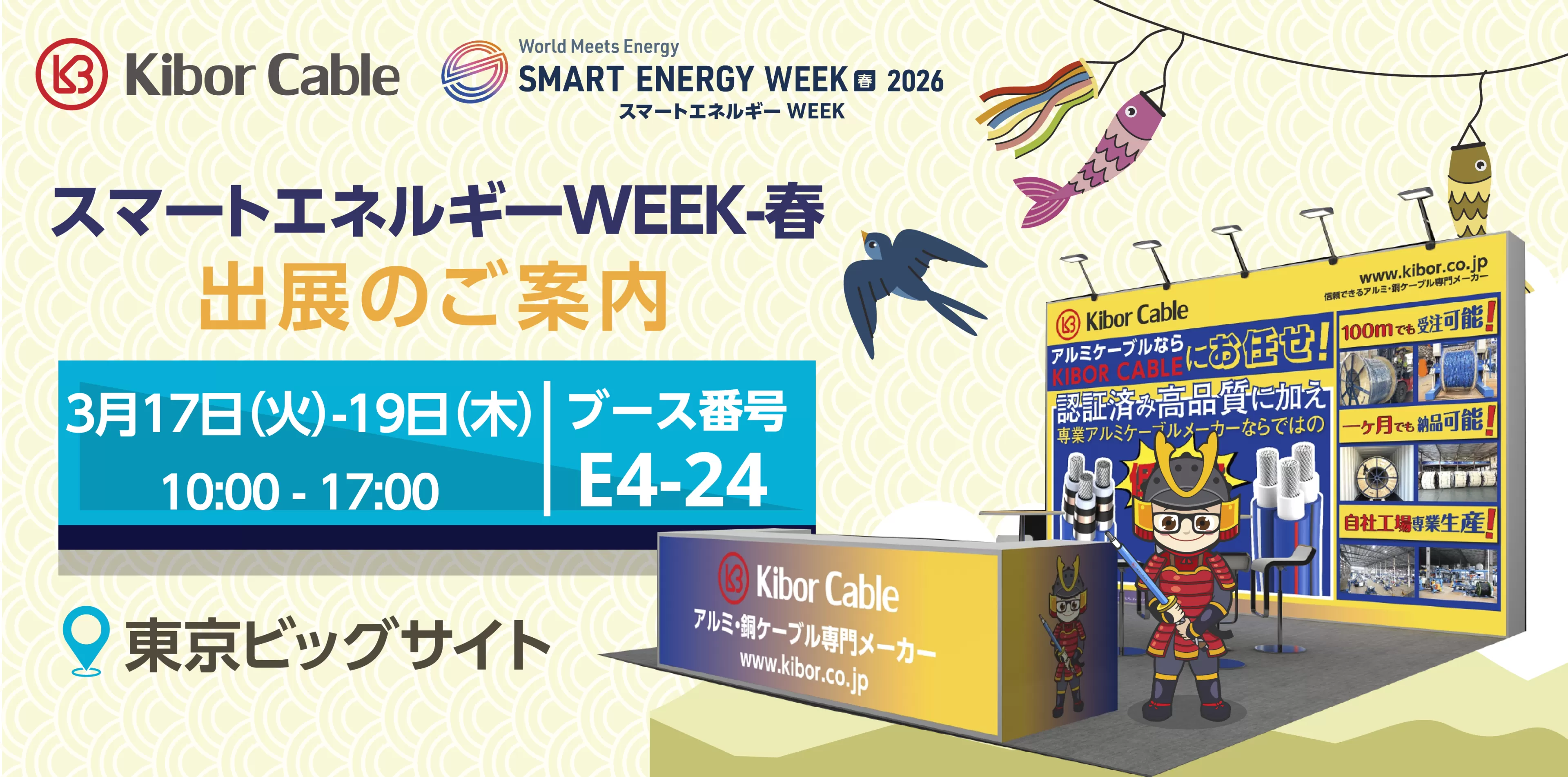 【出展のお知らせ】KIBOR CABLE 2026年3月17日(火)〜19日(木)東京ビッグサイトに開催されるスマートエネルギーWEEK PV EXPO【春】に出展のお知らせ