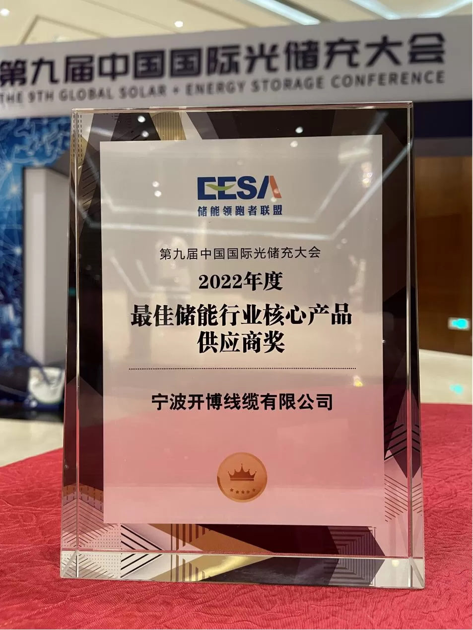 開博ケーブルも、エネルギー貯蔵システムのための総合的な配線ソリューションを提供することを堅持し、エネルギー貯蔵配線をより効率的で、より安全な奮闘目標です。この賞は主催者及びエネルギー貯蔵業界の関係者がケーブルの開発能力と品質を十分に評価したことを表しており、ケーブルがデュアルカーボン目標の実現に助力し、信頼され尊敬される新エネルギーケーブル生産企業になるというビジョンに対する激励と期待を表しています。