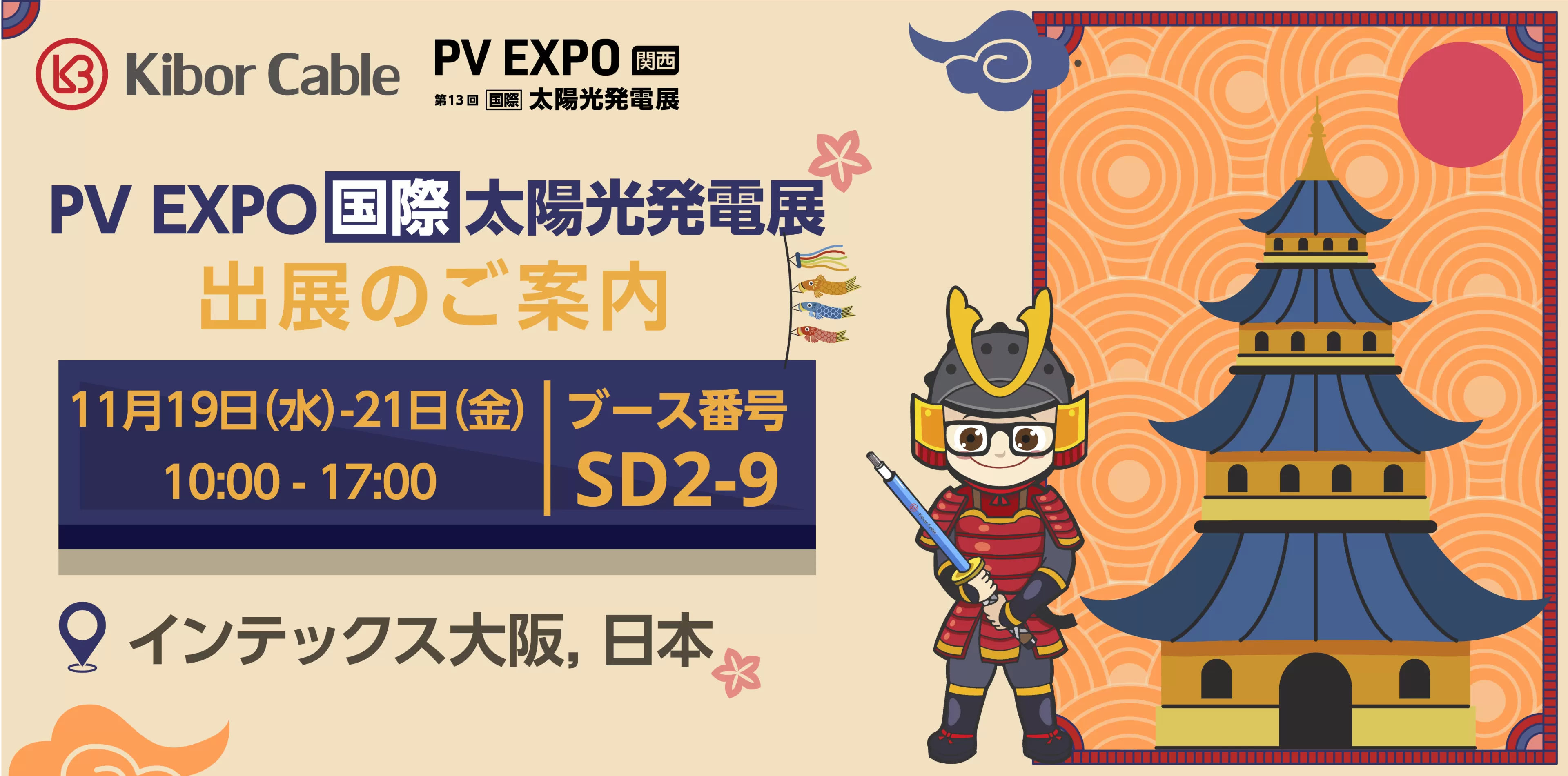 KIBOR CABLEは、2025年11月19日(水)から21日(金)までインテックス大阪に開催される「PV EXPO【関西】〜第13回[国際]太陽光発電展」に出展いたします。