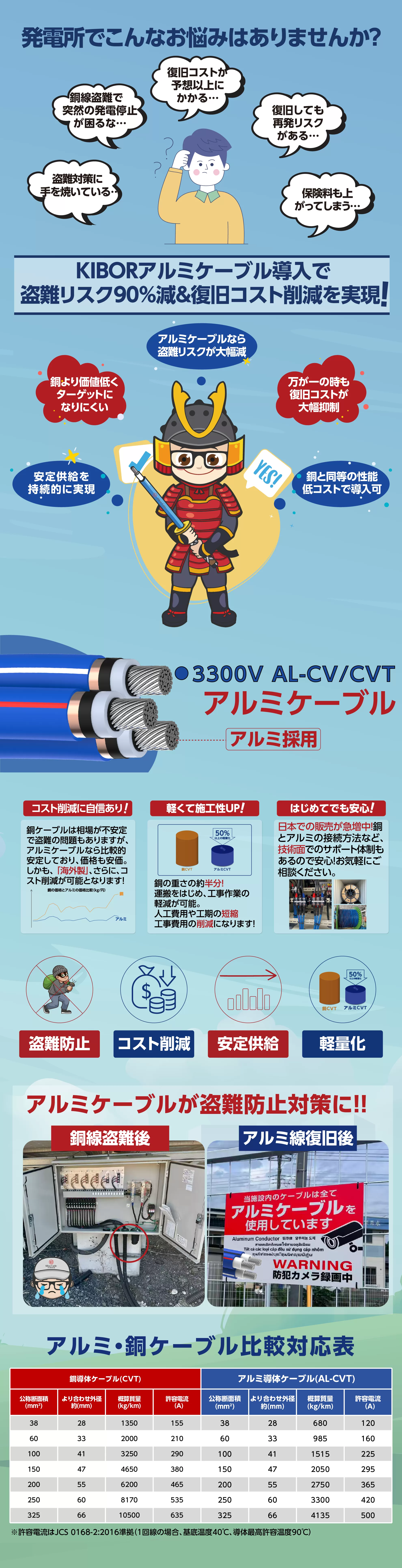 従来の銅導体CVケーブルと同等の耐用年数を持ちます。
