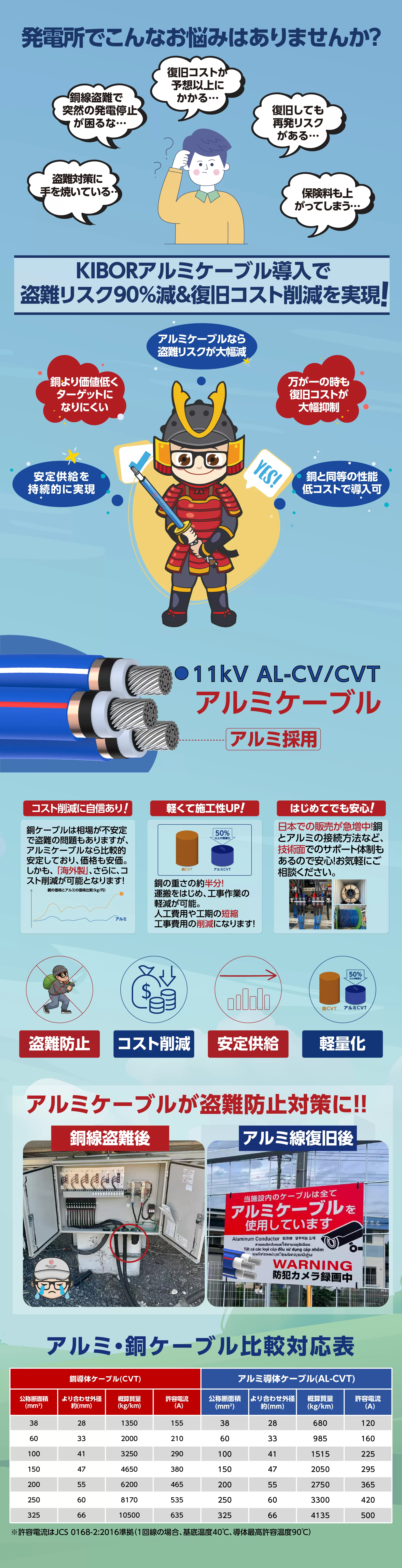 従来の銅導体CVケーブルと同等の耐用年数を持ちます。